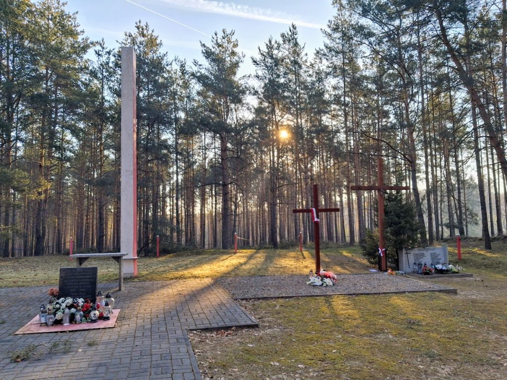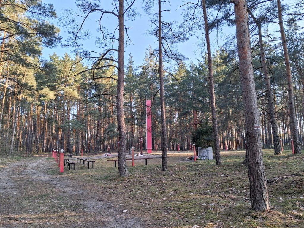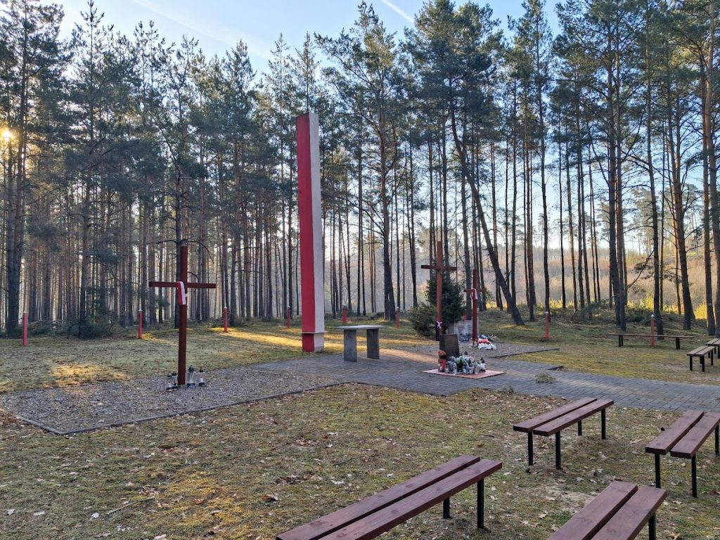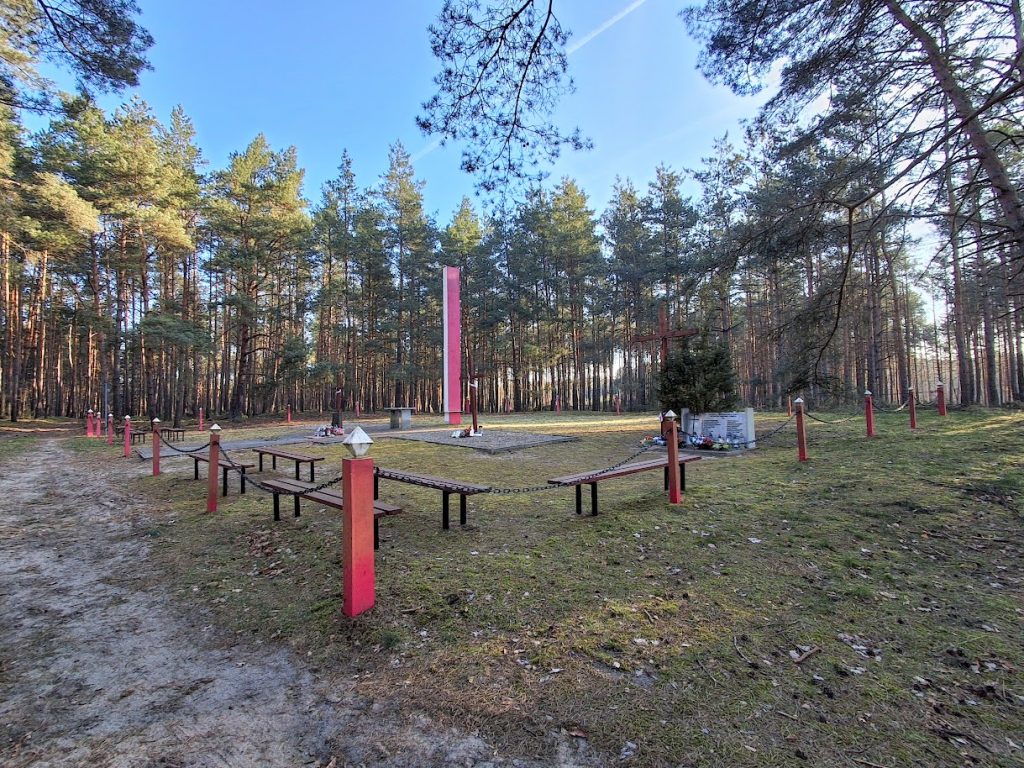Die Fotos in diesem Beitrag zeigen die Gedenkstätte an der Stelle im Wald zwischen den Ortschaften Klamry (dt. Klammer) und Rybieniec (dt. Ribenz), an der im Herbst 1939, insbesondere in der Zeit vom 12. Oktober bis zum 11. November, von Deutschen begangene Massenhinrichtungen stattgefunden haben (Lage bei Google Maps).